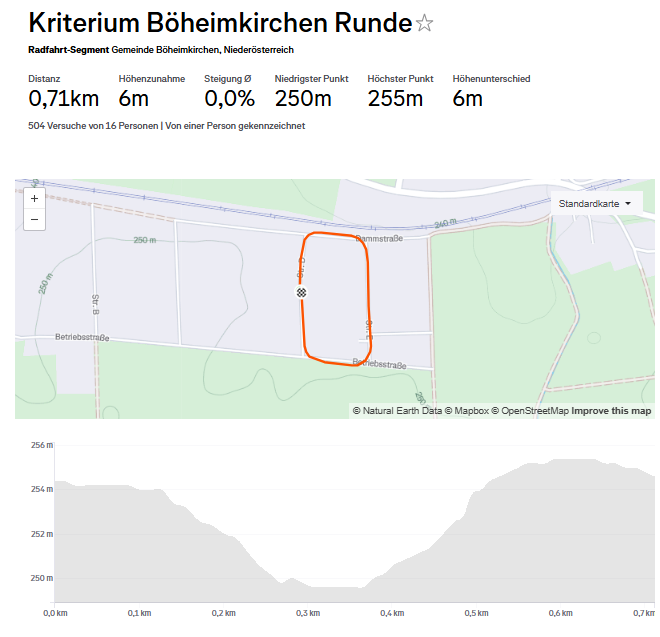 Ein potenzieller Austragungsort ist das Industriezentrum Böheimkirchen, siehe Strava-Segment „Kriterium Böheimkirchen Runde“ https://www.strava.com/segments/32675833